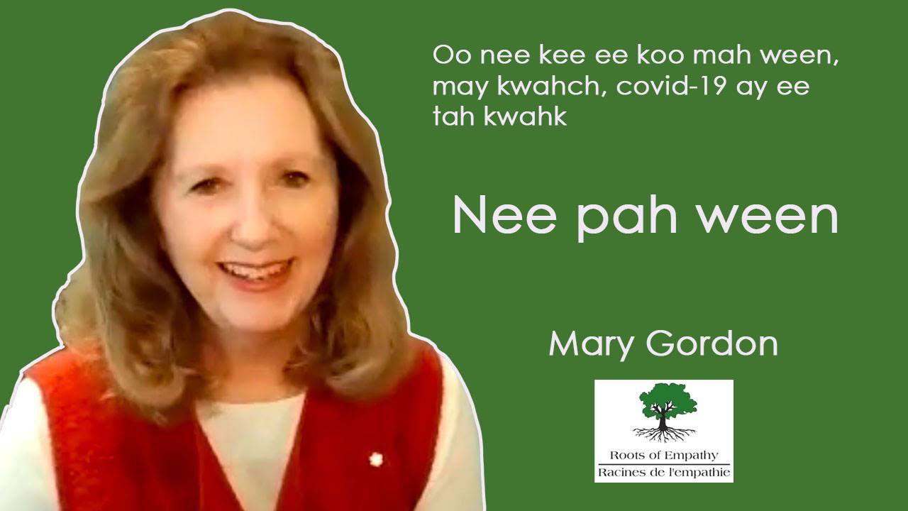 Mary Gordon ah nee moo tahm, kah kee stay nee tah kwah nee neek, shah shee pay tahm moo ween, naystah, kah oo chee oo shoo oo mah kahk, wee chah wee too nah nee wahk.
